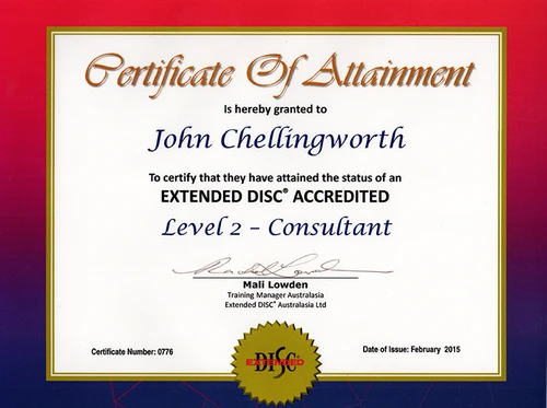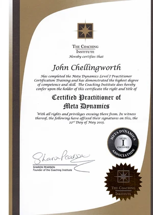 Credentialed Practitioner of Coaching with TCI, John is certified in Meta Dynamics Level 1, 2 & 3 (incl Facilitation).